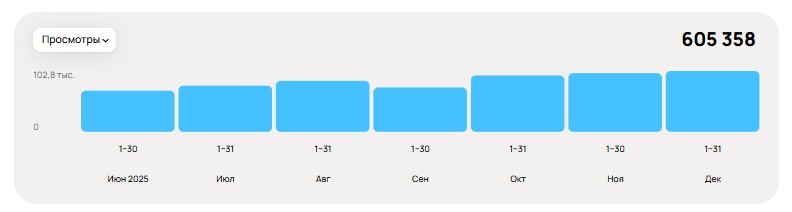 Просмотры за период Июнь 2025 – Декабрь 2025